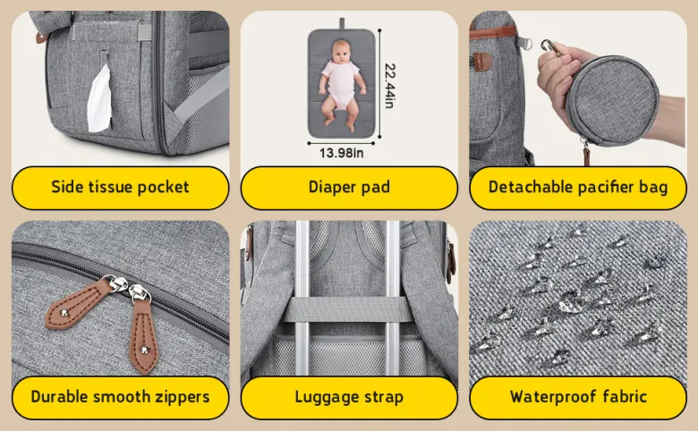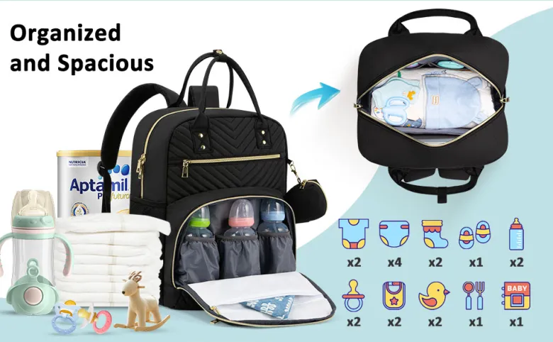 Smart Organization: Our diaper bag features multiple compartments, allowing you to separate diapers, wipes, bottles, and personal items. No more digging around for that elusive pacifier!